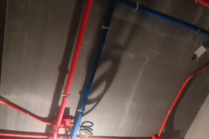 水電進行啦。冷熱水管包管,避免潮濕,強弱電線進行距離隔離,保證無電交叉,專業的施工就在這里