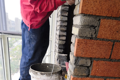 瓦工砌墻啦,采用蜈蚣腳工藝保證安全穩妥,裝修先看杰美裝飾