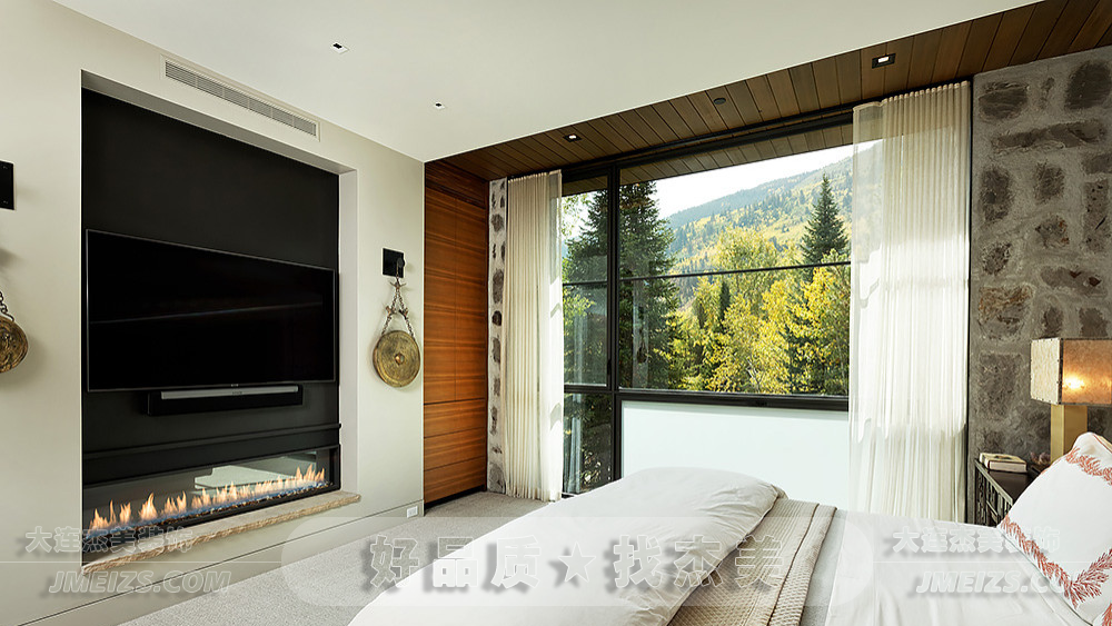 大片落地窗將室外的山野風光一覽無遺地展現在眼前,讓人感覺仿佛自己就在大自然之中。