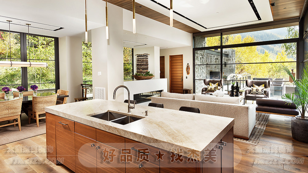 它讓整個廚房充滿了自然的光影,同時也將室外的美景一覽無遺地展現在眼前。