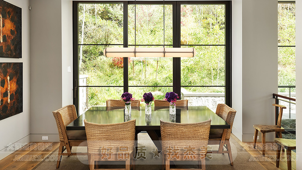 無論是墻面的裝飾畫,還是餐桌上的花瓶,都展現了一種自然和和諧的美學理念。