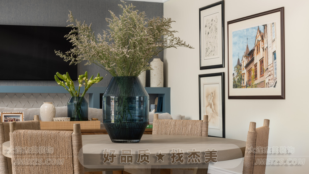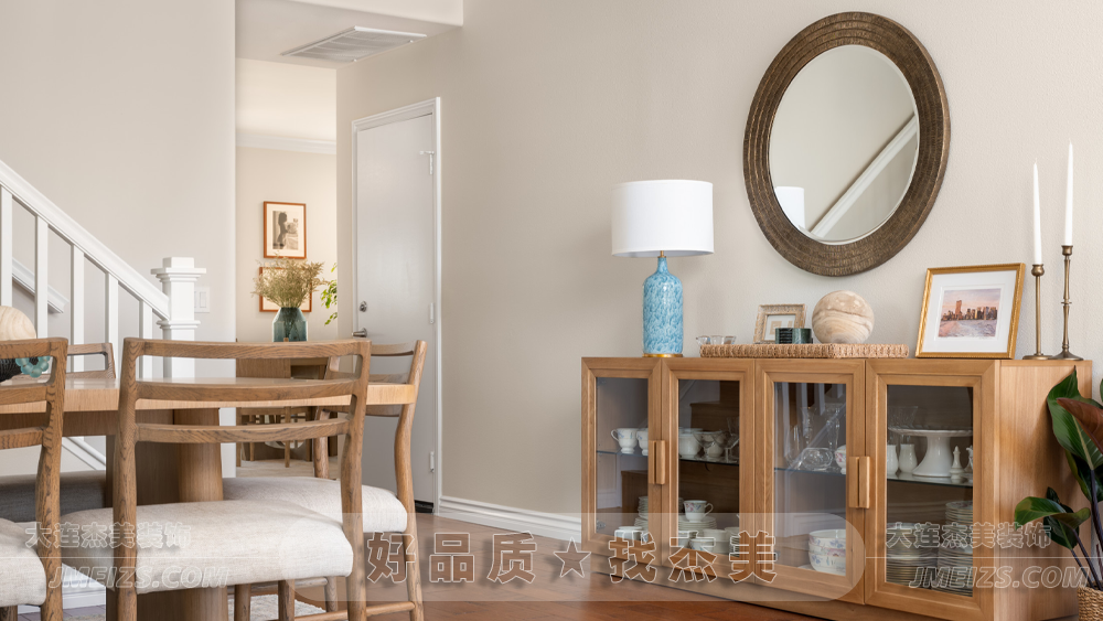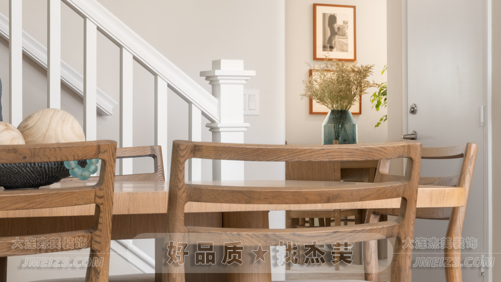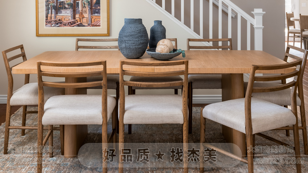 餐廳中的餐桌、餐椅和餐具柜,都采用了實木材料。這種原木的質感,不僅增添了一份自然與溫馨,還為整個空間帶來了一種原始與質樸的氛圍。