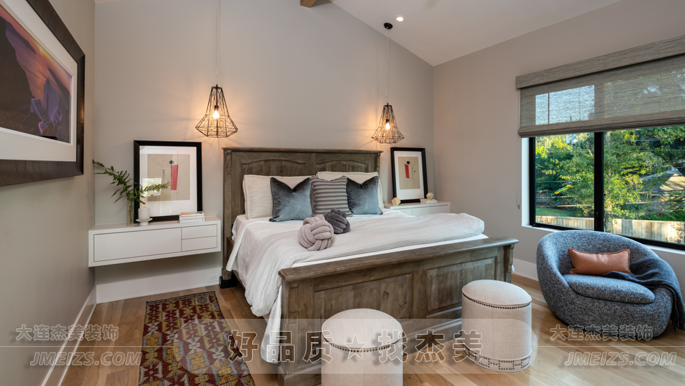 杰美裝飾以暖白色調為整個臥室帶來了一種溫馨而又舒適的感覺。這種顏色不僅能夠放松身心,還能為人們帶來一種寧靜和平的感覺。
