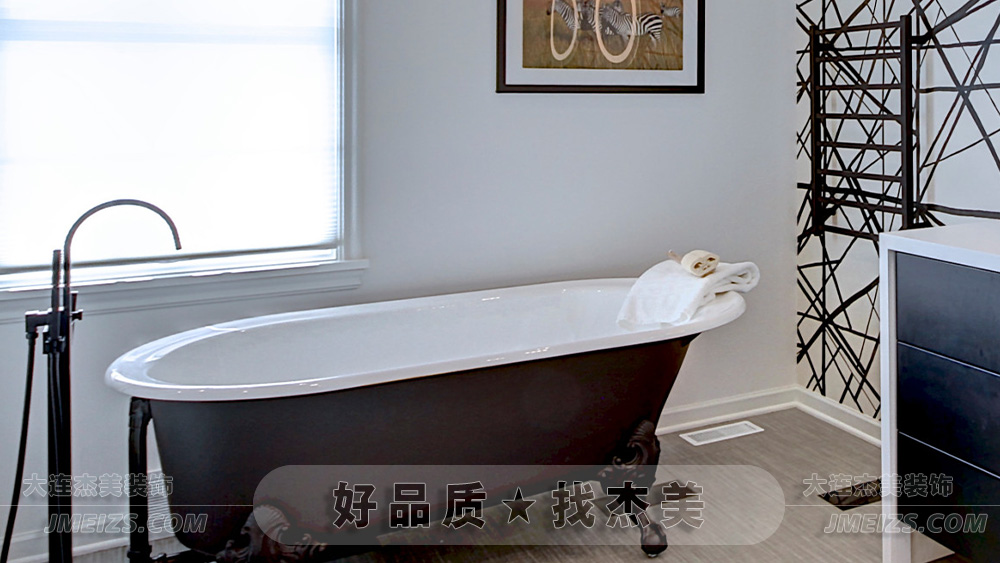 經典的獨立式浴缸,其深色調和爪腳細節,