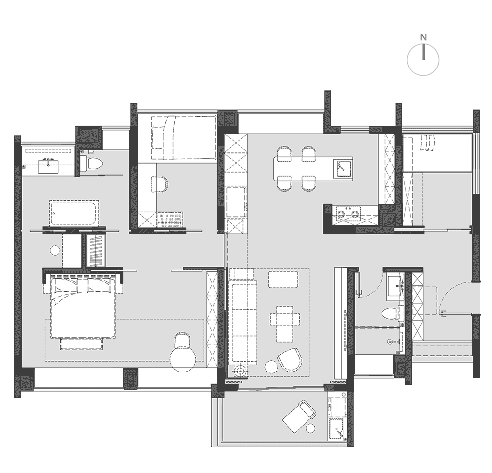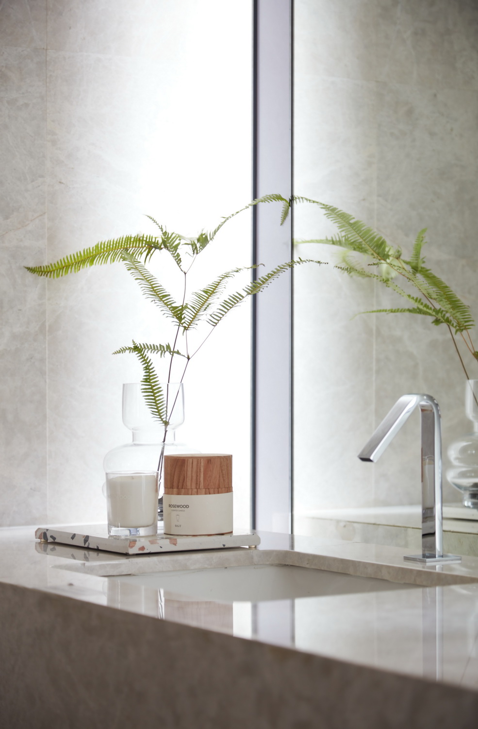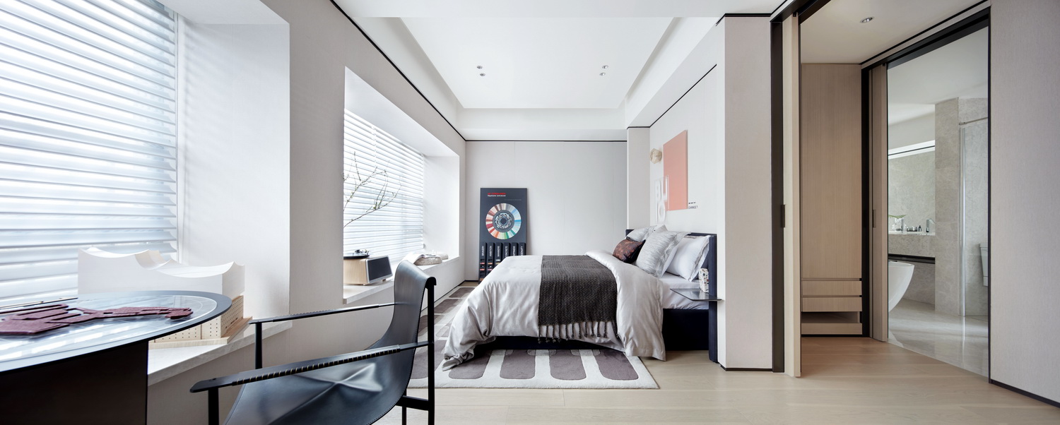 主臥干濕分區(qū),大膽取消隔墻,帶來全新體驗??諝饽媳睂α?,讓生活向陽而生。開放后的空間,打破常規(guī),模糊功能定義。這里,空間流動多元,充滿曖昧氣息,更具想象與可能性。不再被傳統(tǒng)格局